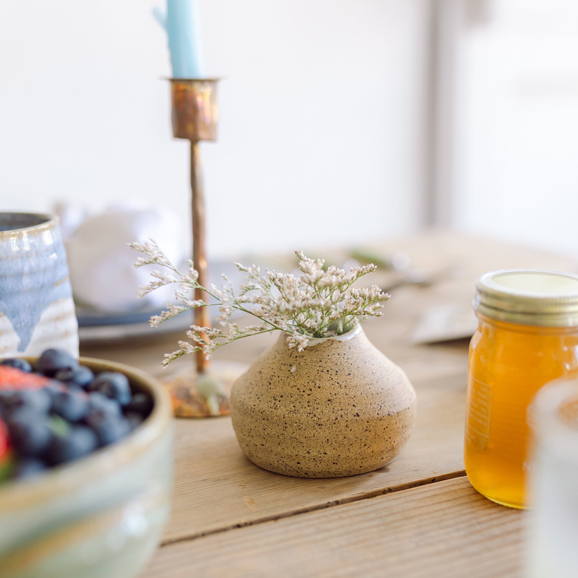 Perfect to display alone or in a set, these vases can be used to hold flowers and plant clippings. With a natural finish exterior and an antique white glazed interior, each vase is unique in shape and finish.