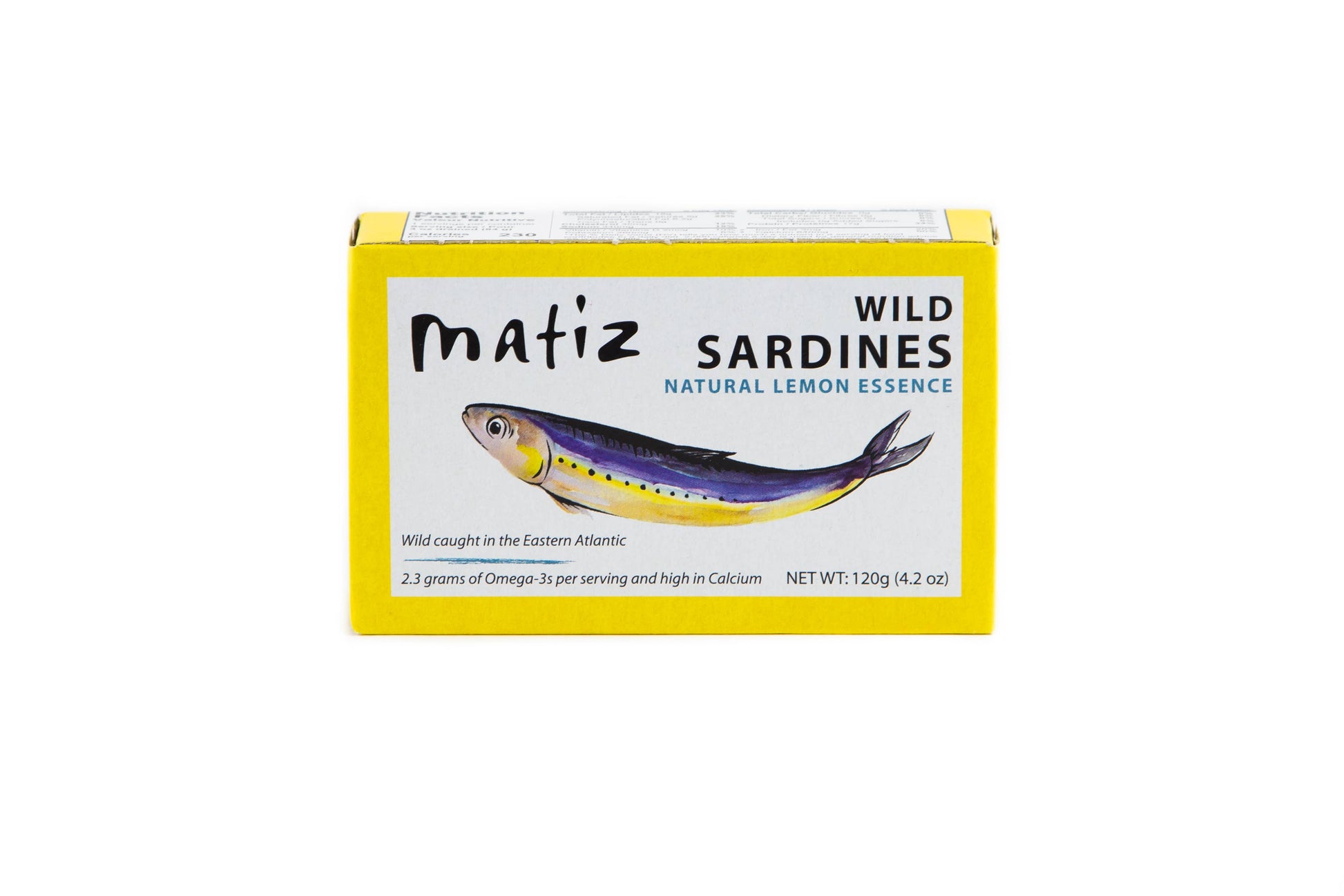 The very finest bone-in and skin-on wild caught sardines from Spain. Hand-packed with Spanish olive oil and lemon. They are prized for their plump, tender texture and rich flavor. 4.2 oz.