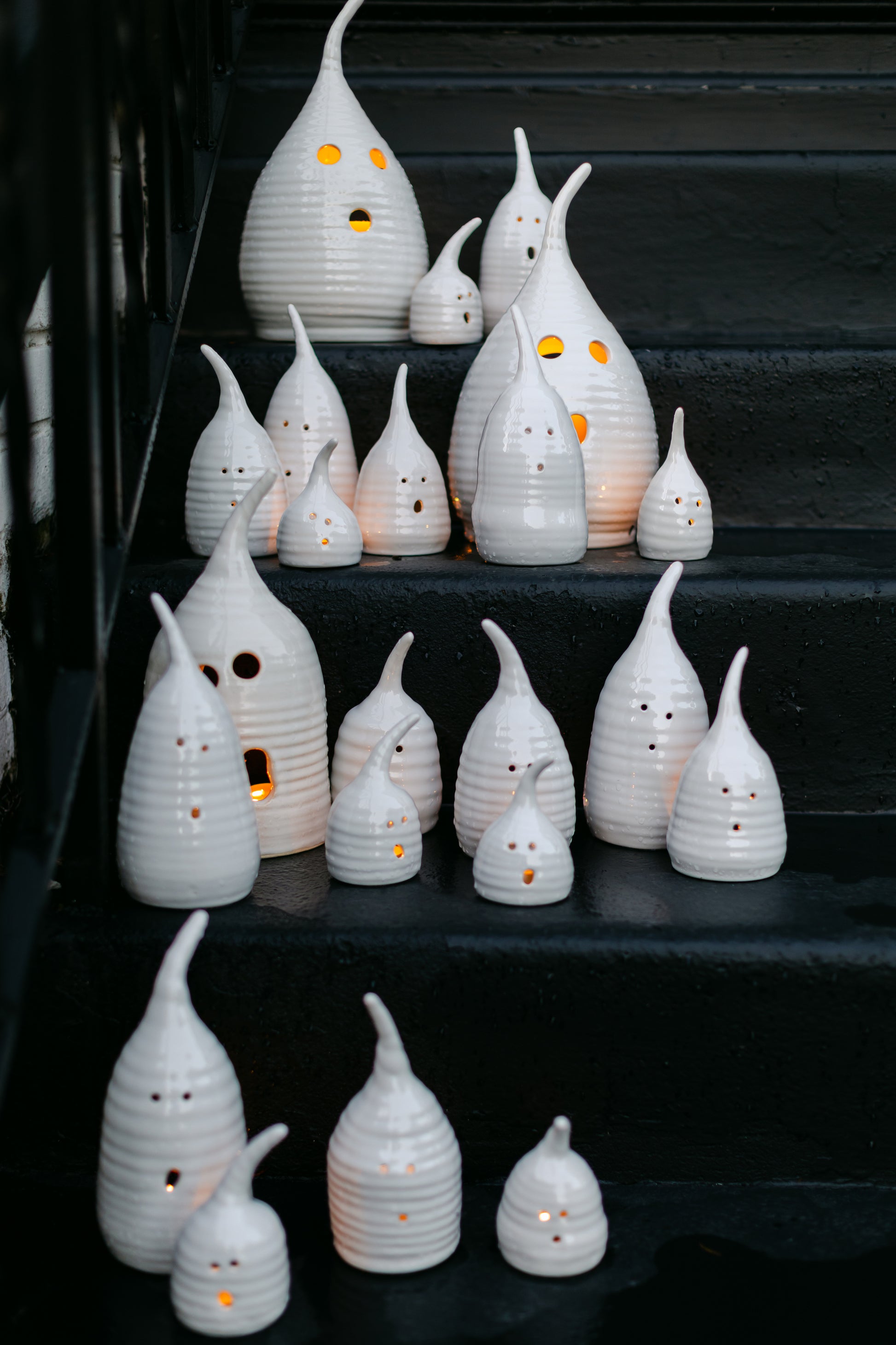 The Medium Ghost bridges the gap between the Small Ghost (our favorite) and the Large Ghost (the most versatile size). A must have for all Ghost collections! Seen here with tea light candles that illuminate the Ghost.