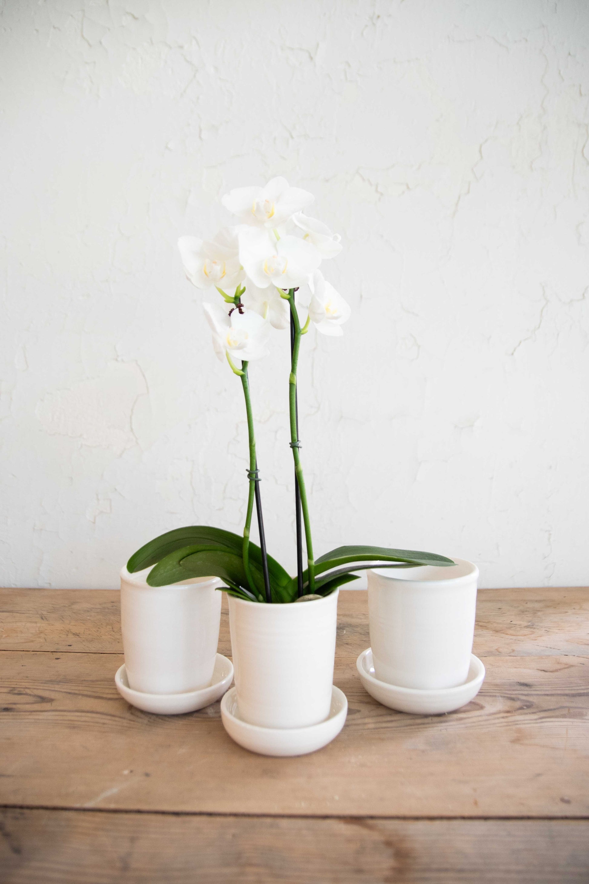 These little pots are perfect for your orchid and include a saucer in case you want to plant other flowers in these! Made out of our white clay and glazed in our white glaze. Perfect for you to pot your favorite summertime flower!