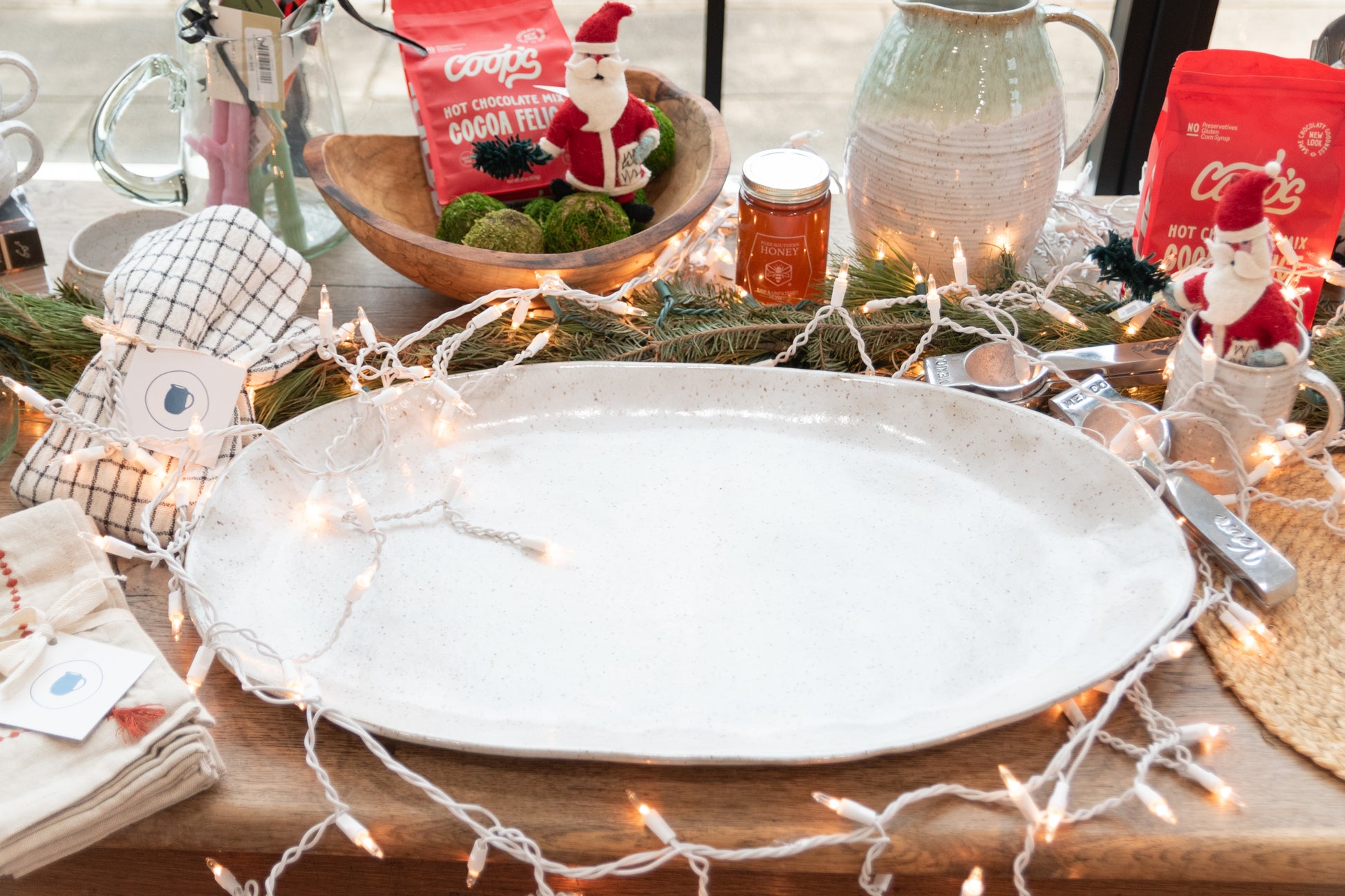 These platters have been made by hand while using a handmade form to hold their shape. All of the platters from this release are then hand glazed with house mixed glazes. This Platter was specifically made for our Curated by Mollie Collection.